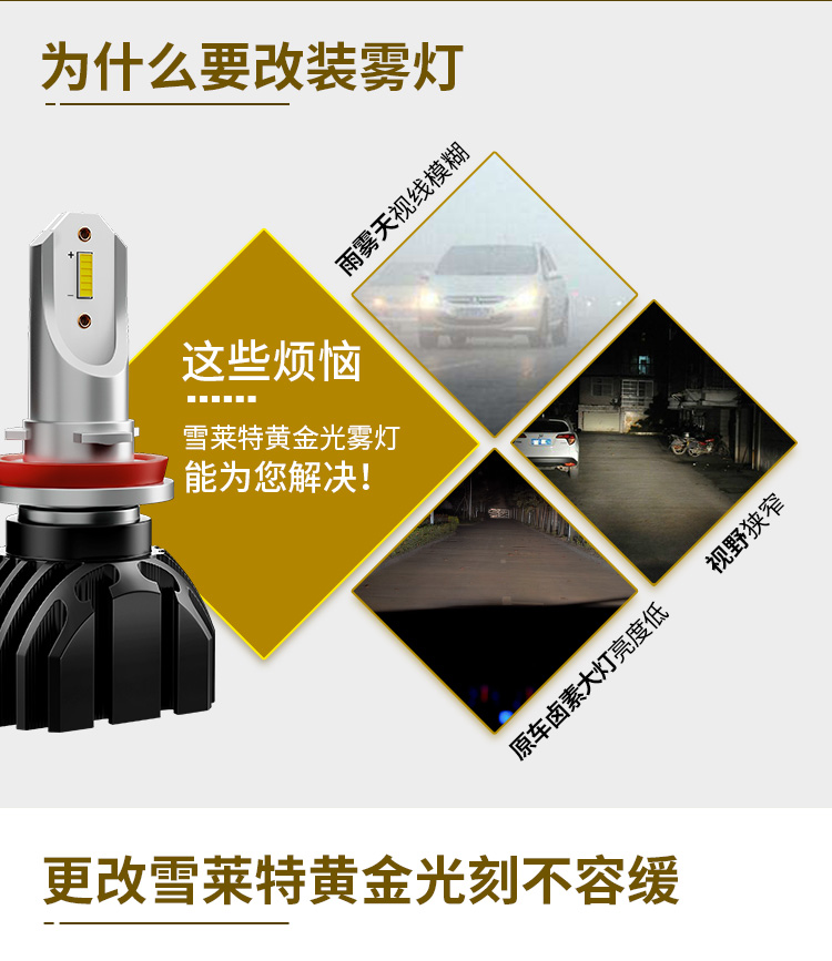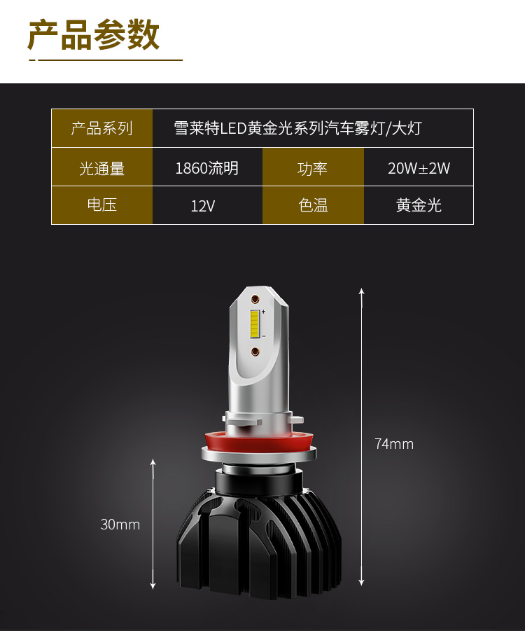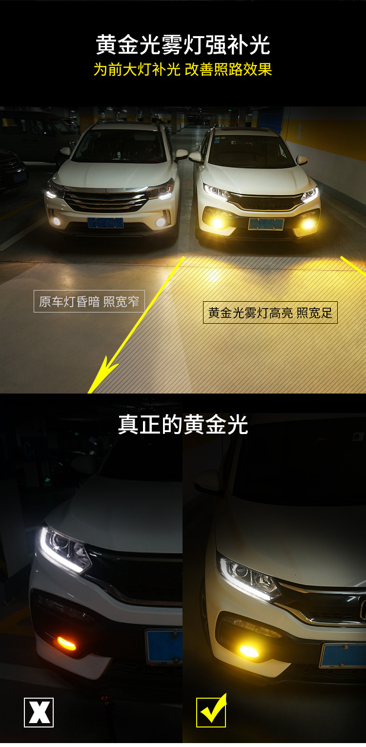 商品名称:雪莱特(Cnlight) 汽车LED黄金光前雾灯灯胆辅助灯改装led高亮单色H8/H9/H11/H16 黄金光20W【一对装】 H8/H9/H11/H16通用型号 一对装
