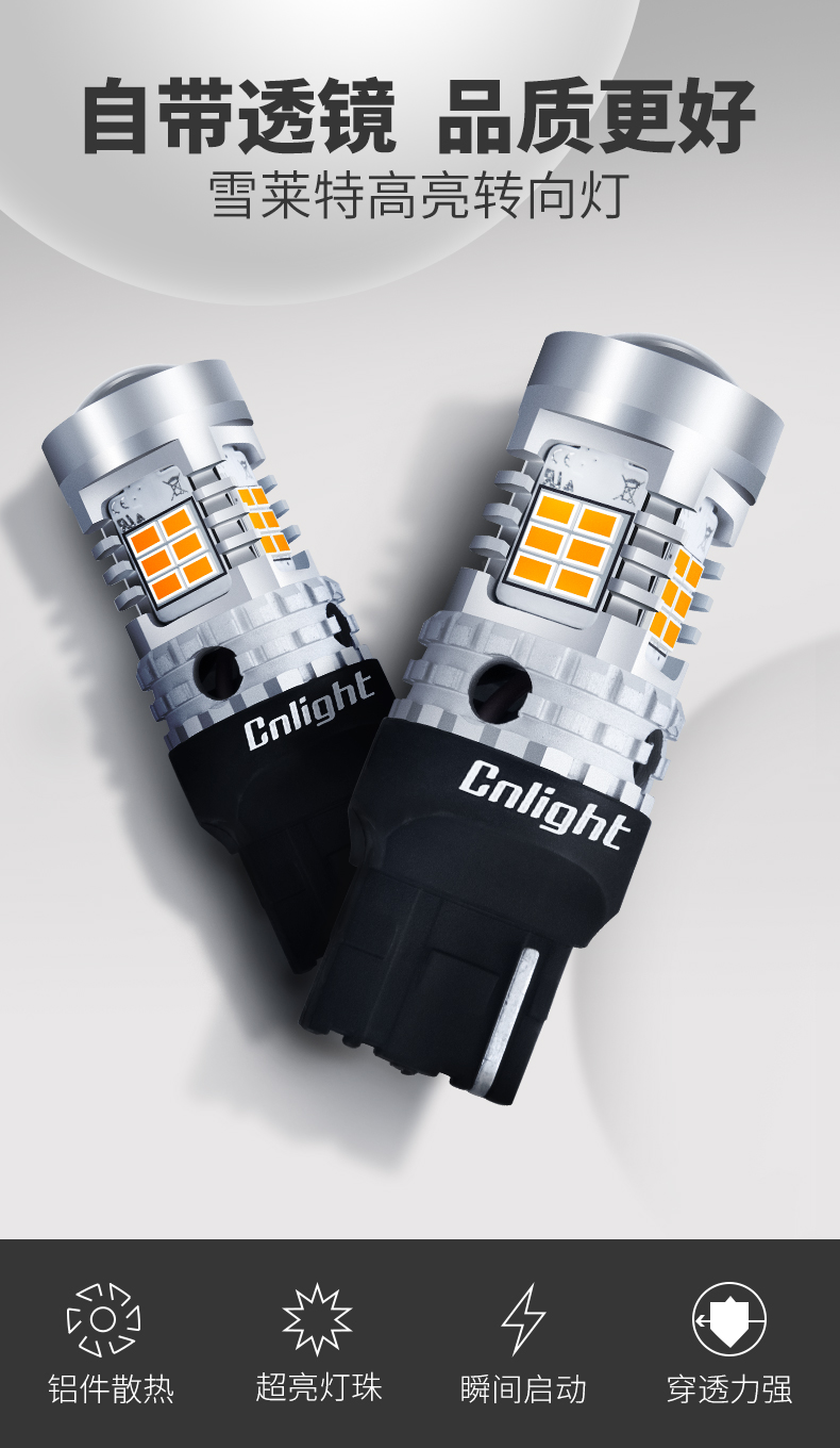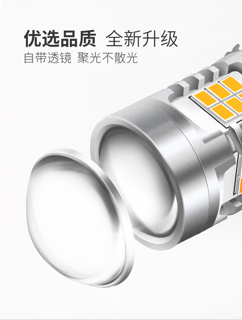商品名称:雪莱特 汽车LED转向灯灯胆 前后转向灯改装带透镜超亮 3000K琥珀黄 1156歪角/PY21W【一只价】
